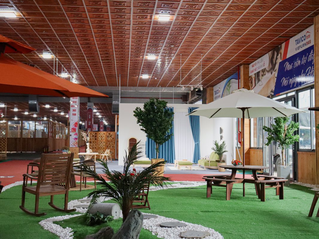 Ưu tiên chất liệu bền bỉ: gỗ xử lý ngoài trời, nhôm sơn tĩnh điện, vật liệu chống thấm.